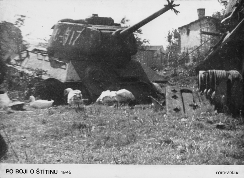 Zničený sovětský tank ve Štítině.